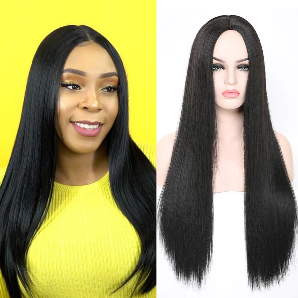 FREEWOMAN Black Hair Pruik Synthetic Wig Hair Extension Lace Wigs For Women Straight Synthetic Hair